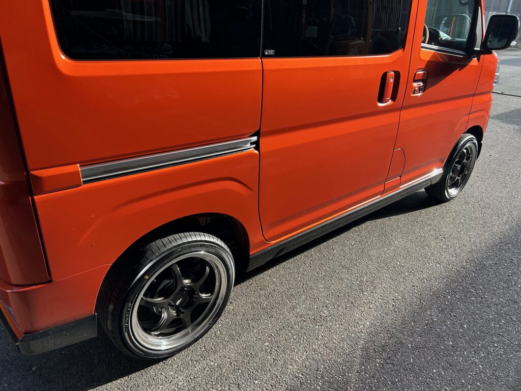 オレンジの車体に良く似合い、純正のホイールと比べるとハンドルが軽い気がします。