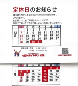 定休日のお知らせ
